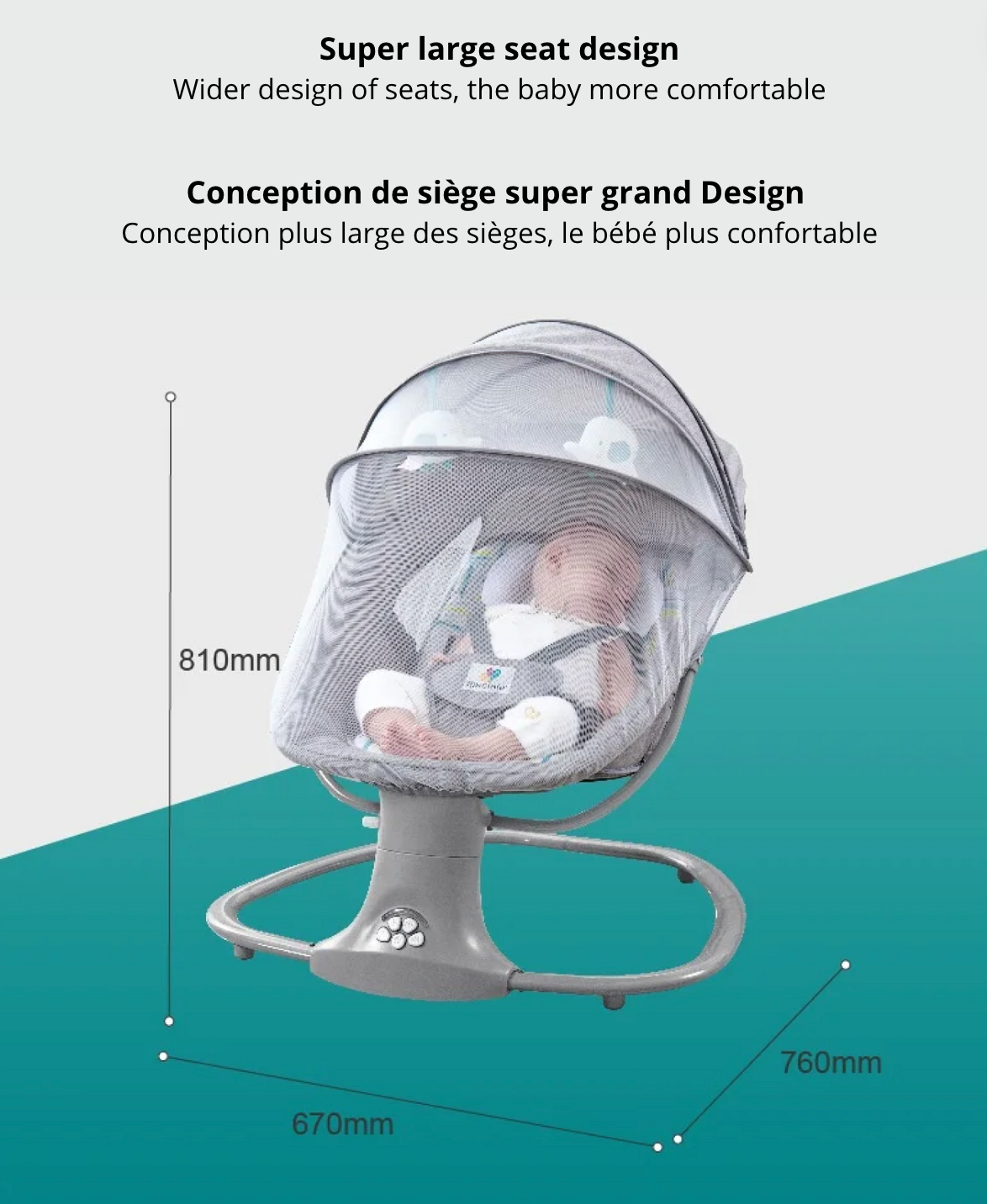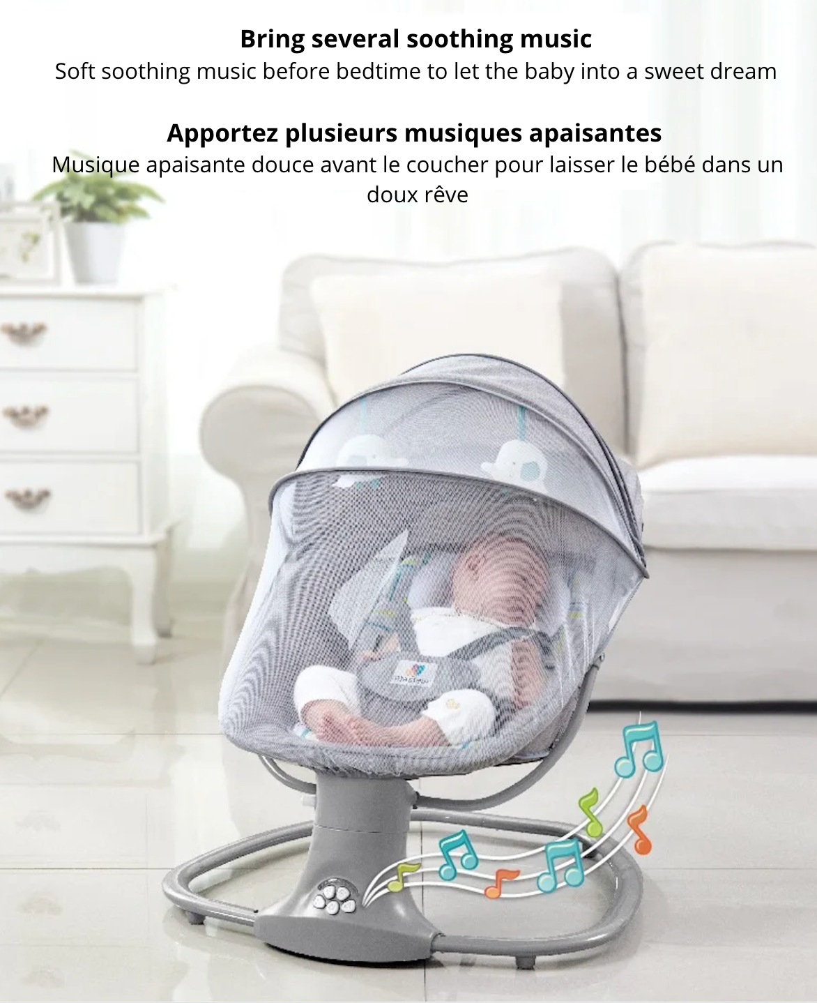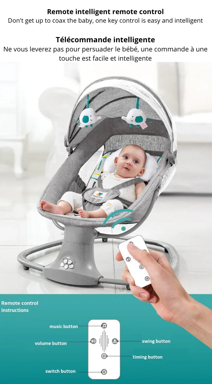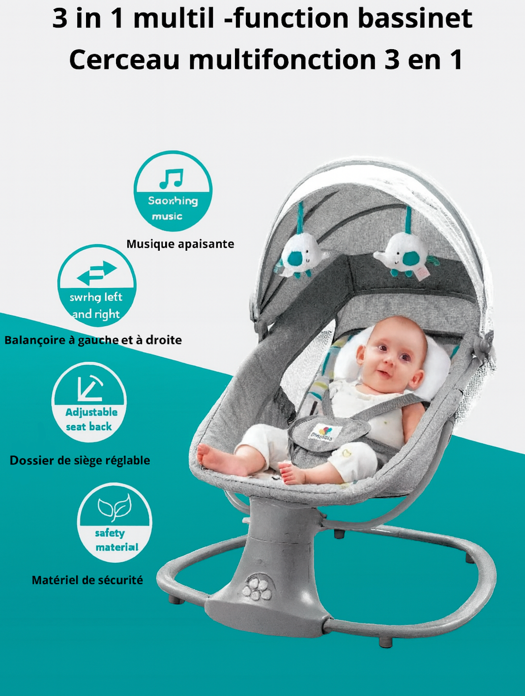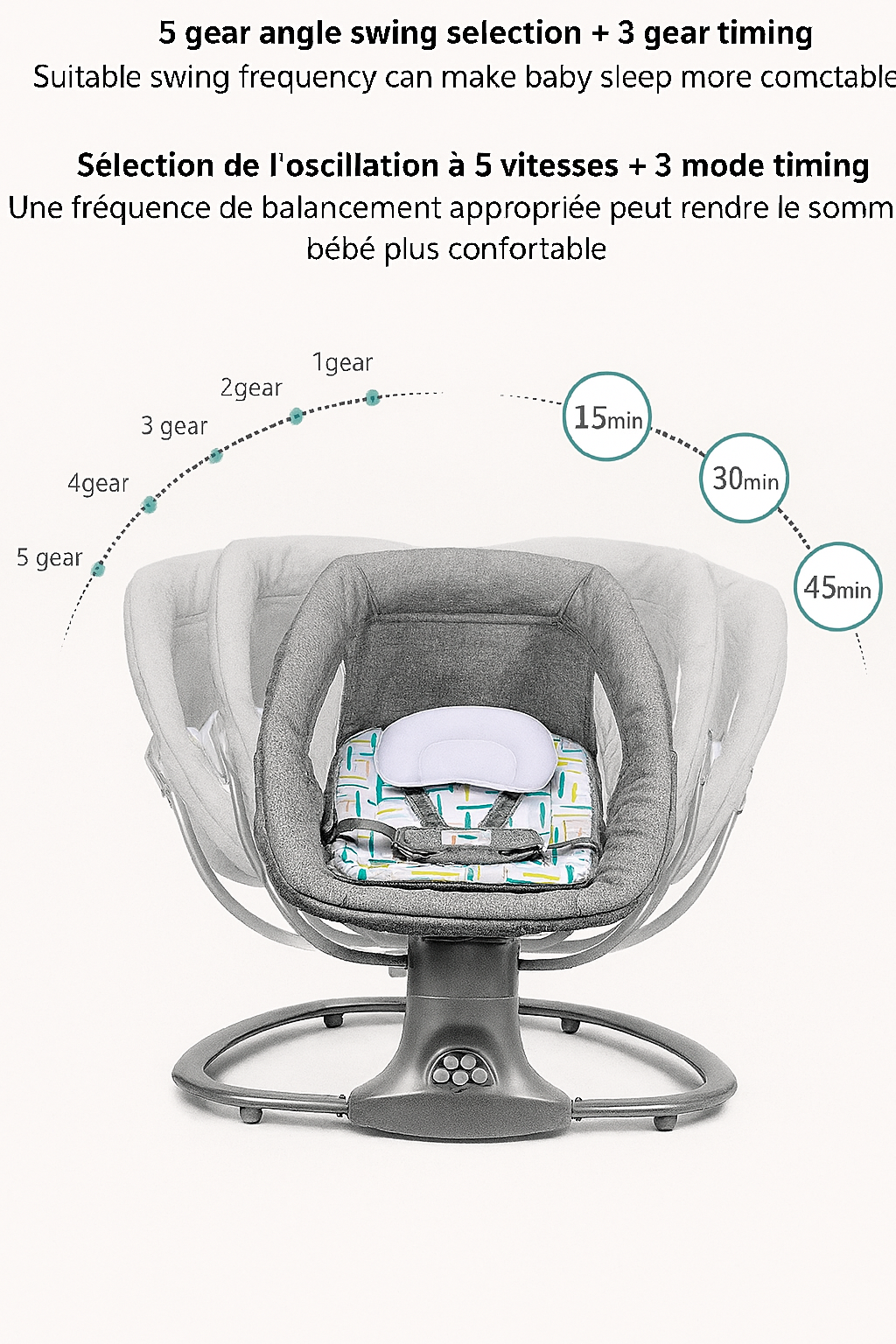 Découvrez notre balancelle Nima, un compagnon idéal pour votre bébé de 0 à 36 mois. Confortable et sécurisée, cette chaise à bascule électrique pour nouveau-né est équipée d'une ceinture de sécurité à 5 points pour assurer le bien-être de votre tout-petit. Offrez à votre bébé un repos paisible et douillet avec notre balancelle Nima.