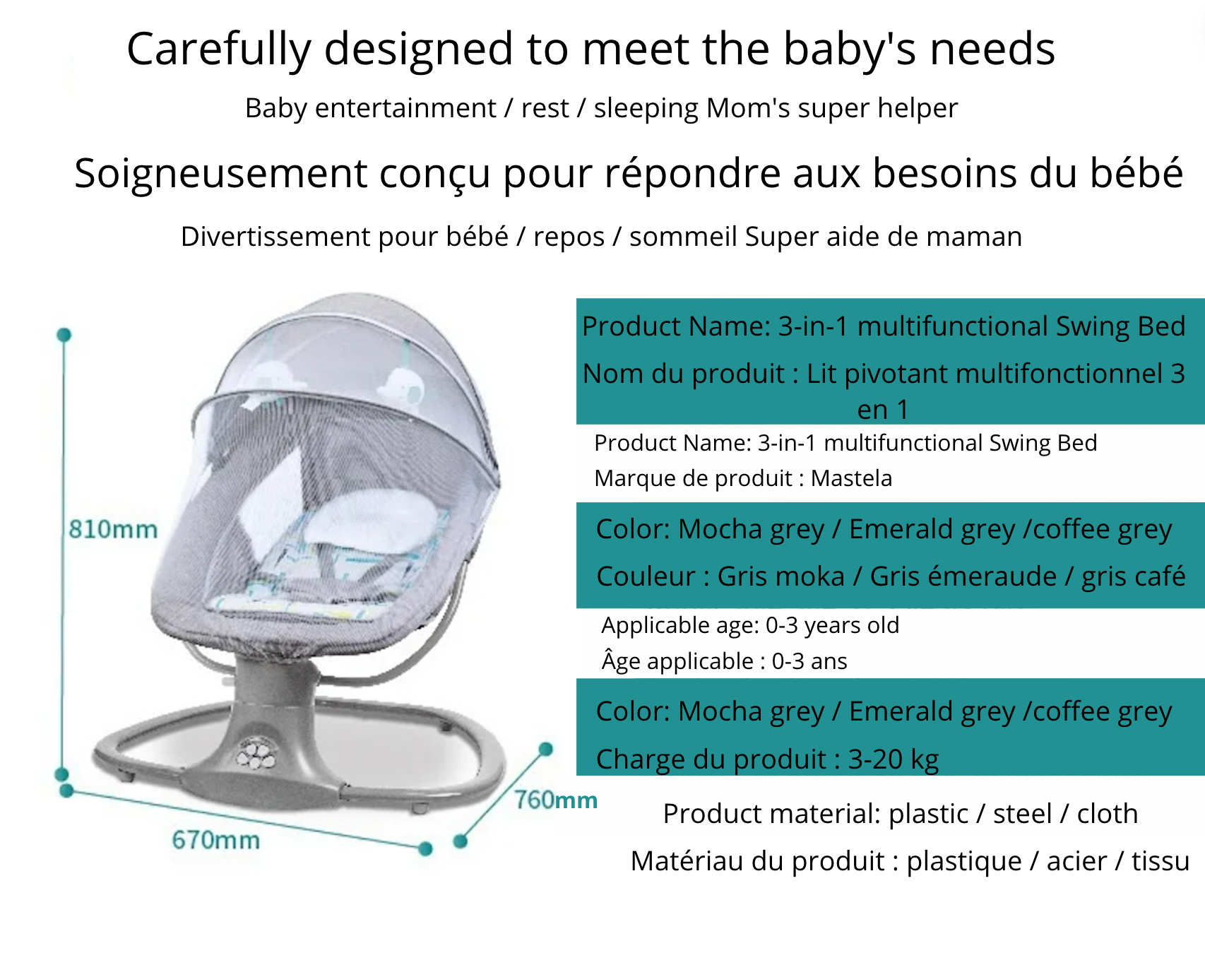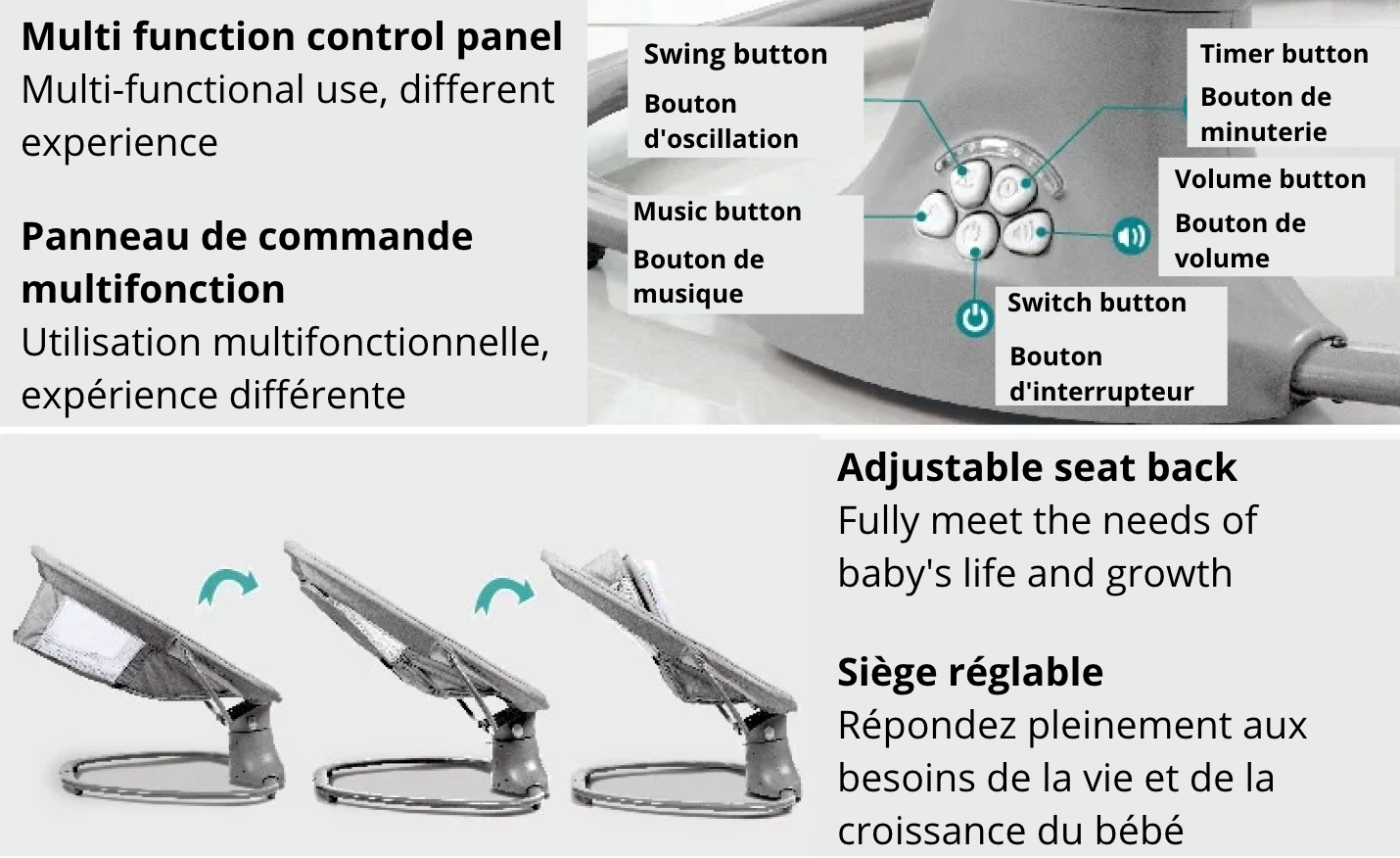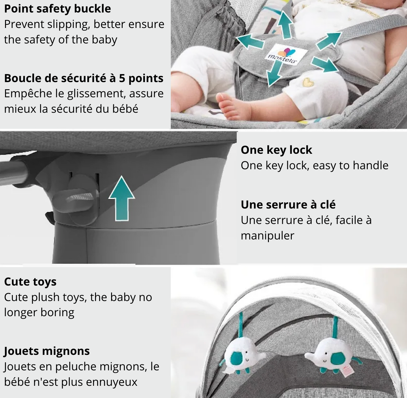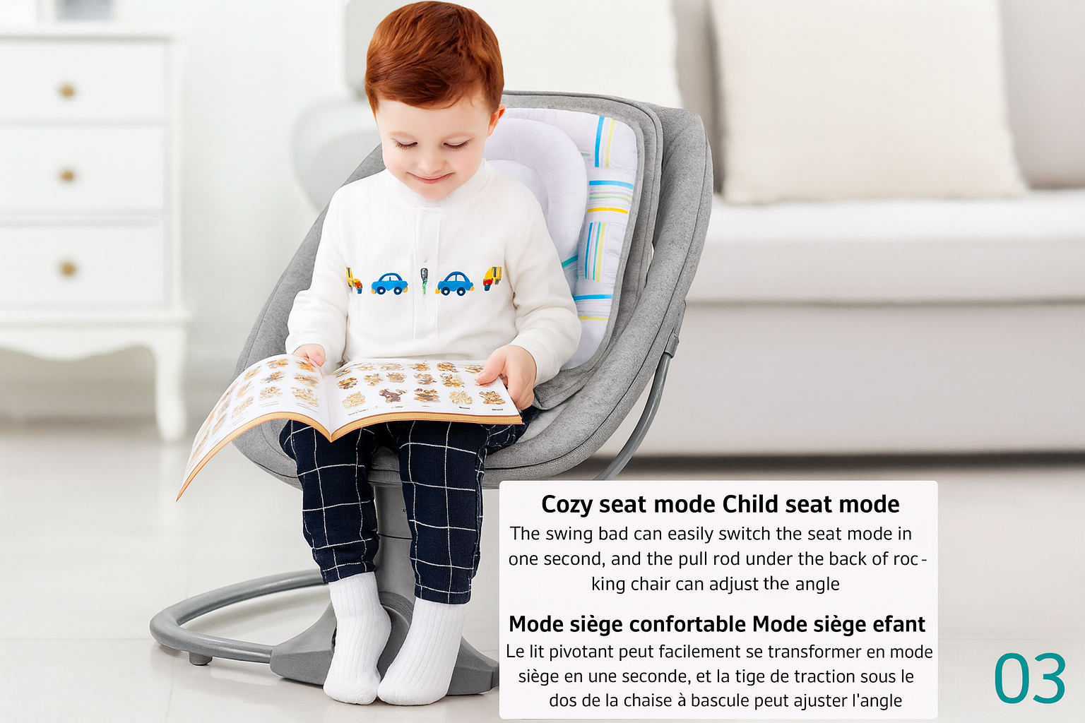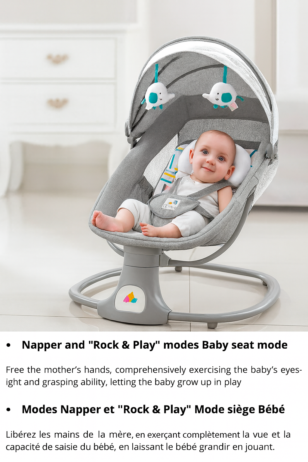 Découvrez notre balancelle Nima, un compagnon idéal pour votre bébé de 0 à 36 mois. Confortable et sécurisée, cette chaise à bascule électrique pour nouveau-né est équipée d'une ceinture de sécurité à 5 points pour assurer le bien-être de votre tout-petit. Offrez à votre bébé un repos paisible et douillet avec notre balancelle Nima.