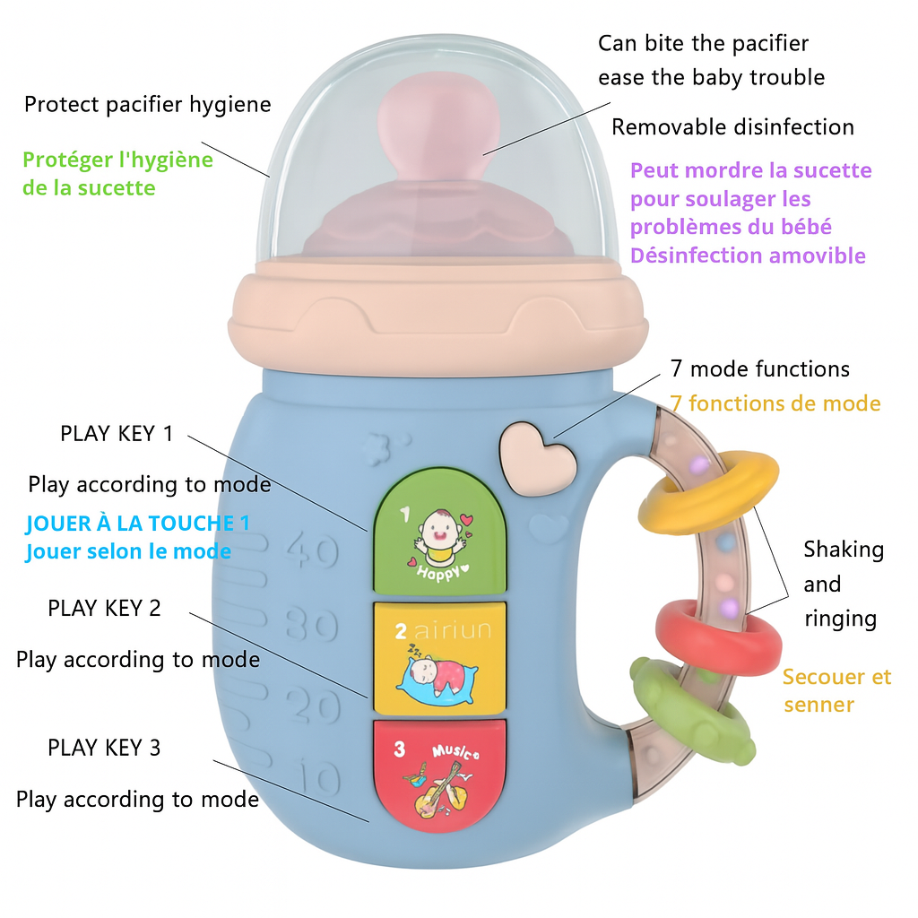 Offrez à votre bébé un compagnon de jeu complet et stimulant avec notre biberon musical, un produit pensé pour accompagner et enrichir les premiers mois de vie de votre enfant.