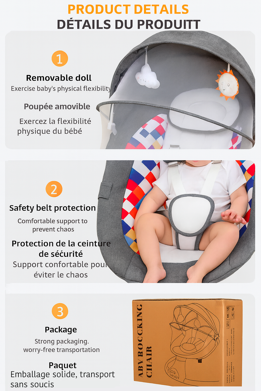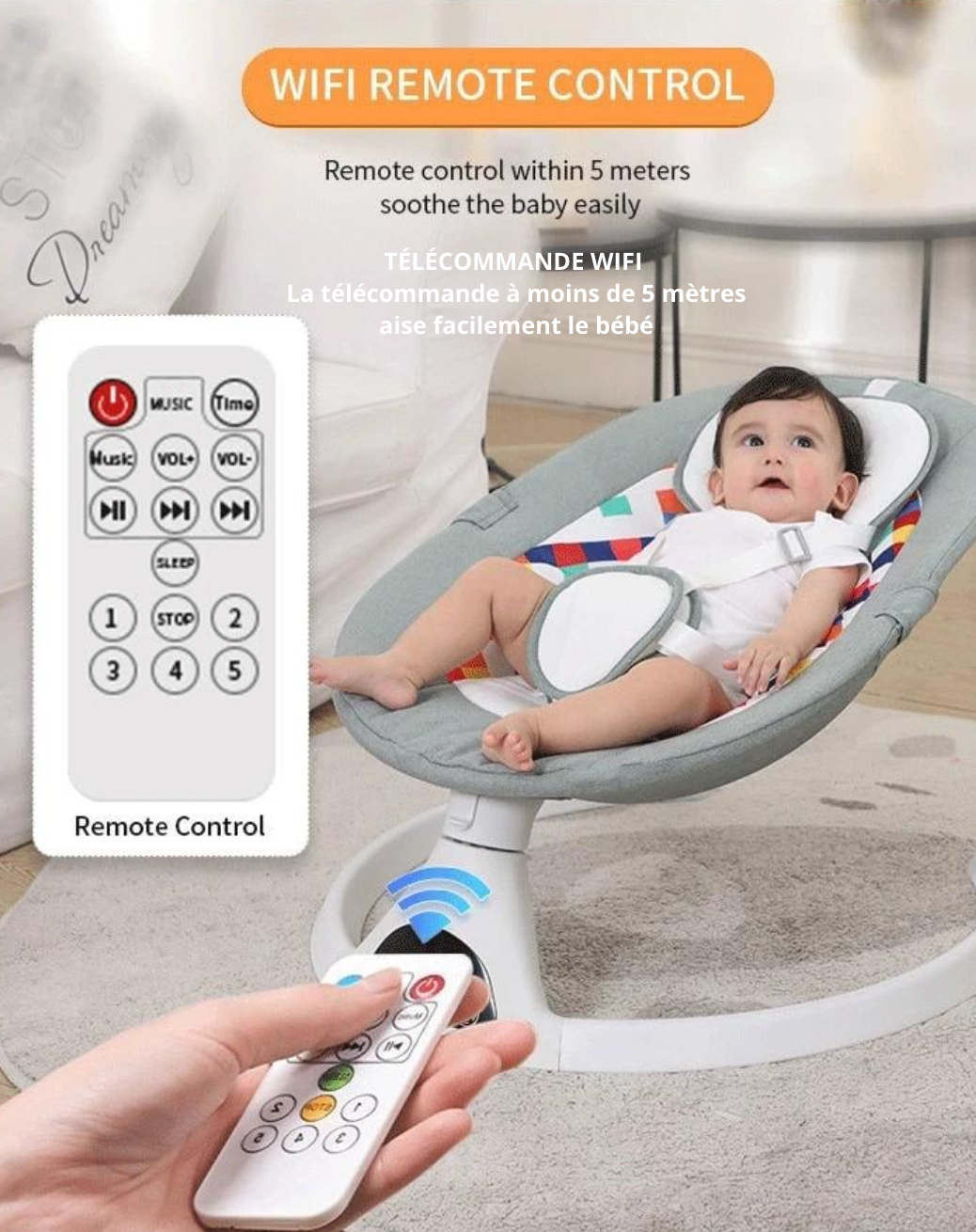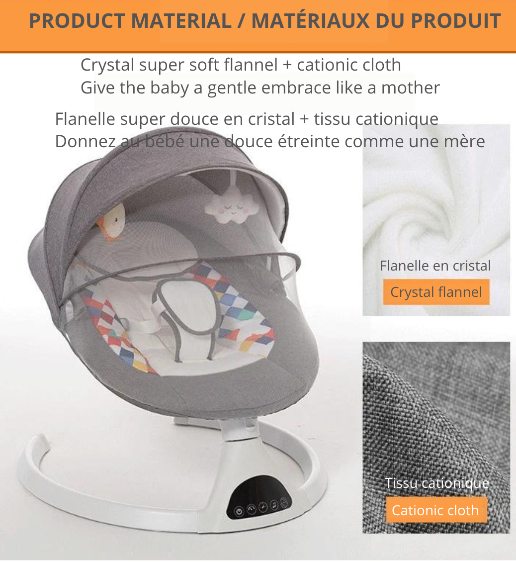 Découvrez la balancelle Milu, un mélange de design luxueux et de praticité, le compagnon idéal pour votre bébé de 0 à 36 mois. Confortable et sécurisée, cette chaise à bascule électrique pour nouveau-né est dotée d'une ceinture de sécurité à 5 points pour garantir le bien-être de votre tout-petit. Offrez à votre bébé des instants de repos paisibles et douillets avec notre balancelle Milu.