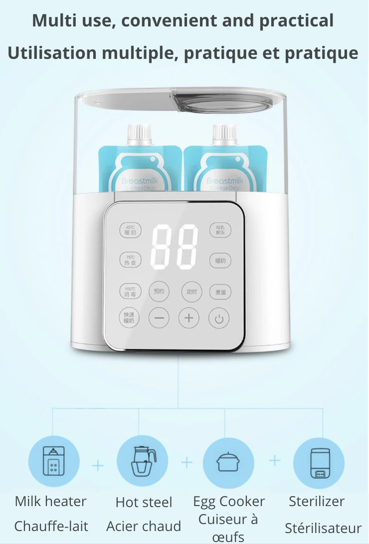 Découvrez notre chauffe-biberon multifonctions 9-en-1, un compagnon indispensable pour les parents occupés à la recherche de praticité et d'efficacité. Ce chauffe-biberon polyvalent est conçu pour simplifier votre quotidien en offrant une gamme complète de fonctionnalités pour prendre soin de votre bébé, de la décongélation au chauffage des aliments complémentaires.