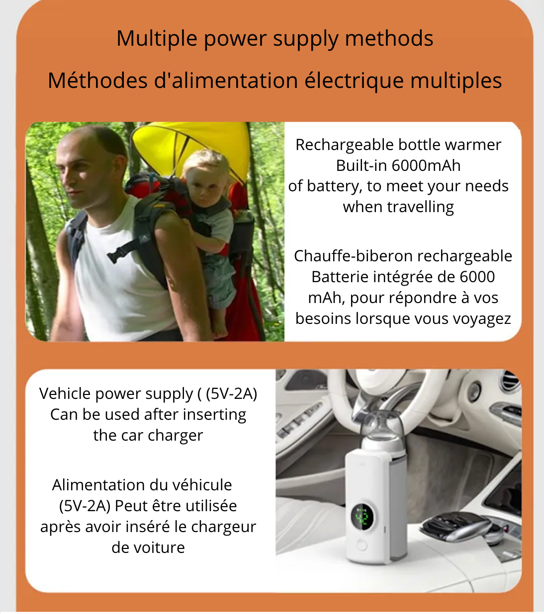 Chauffe-biberon portable avec batterie intégré
