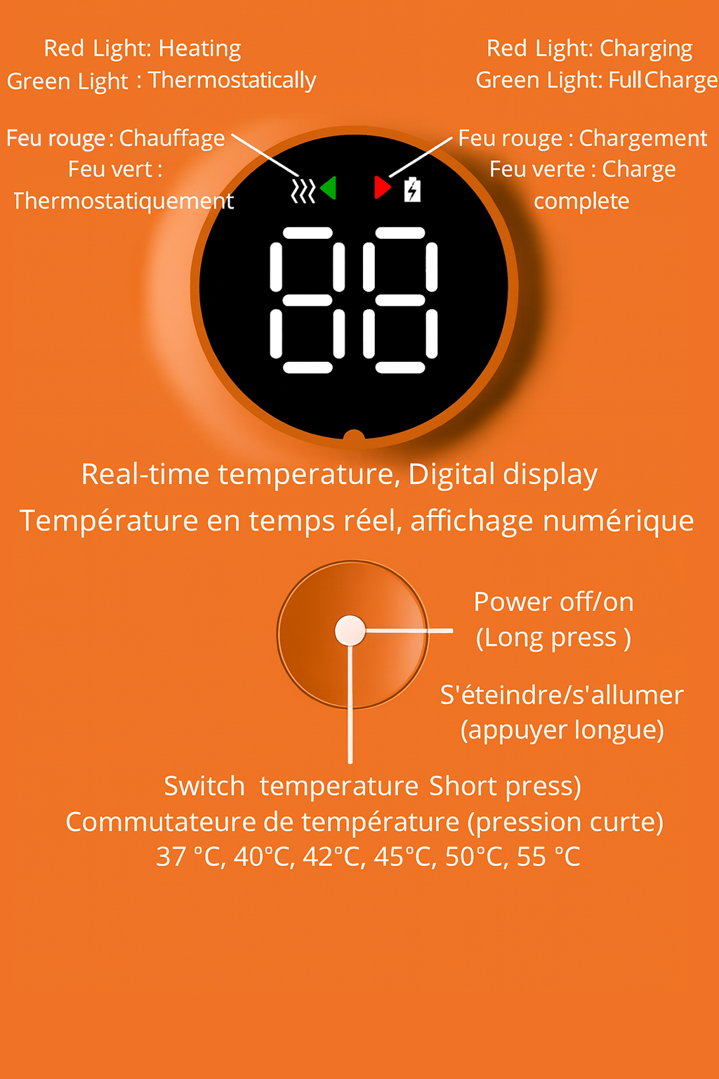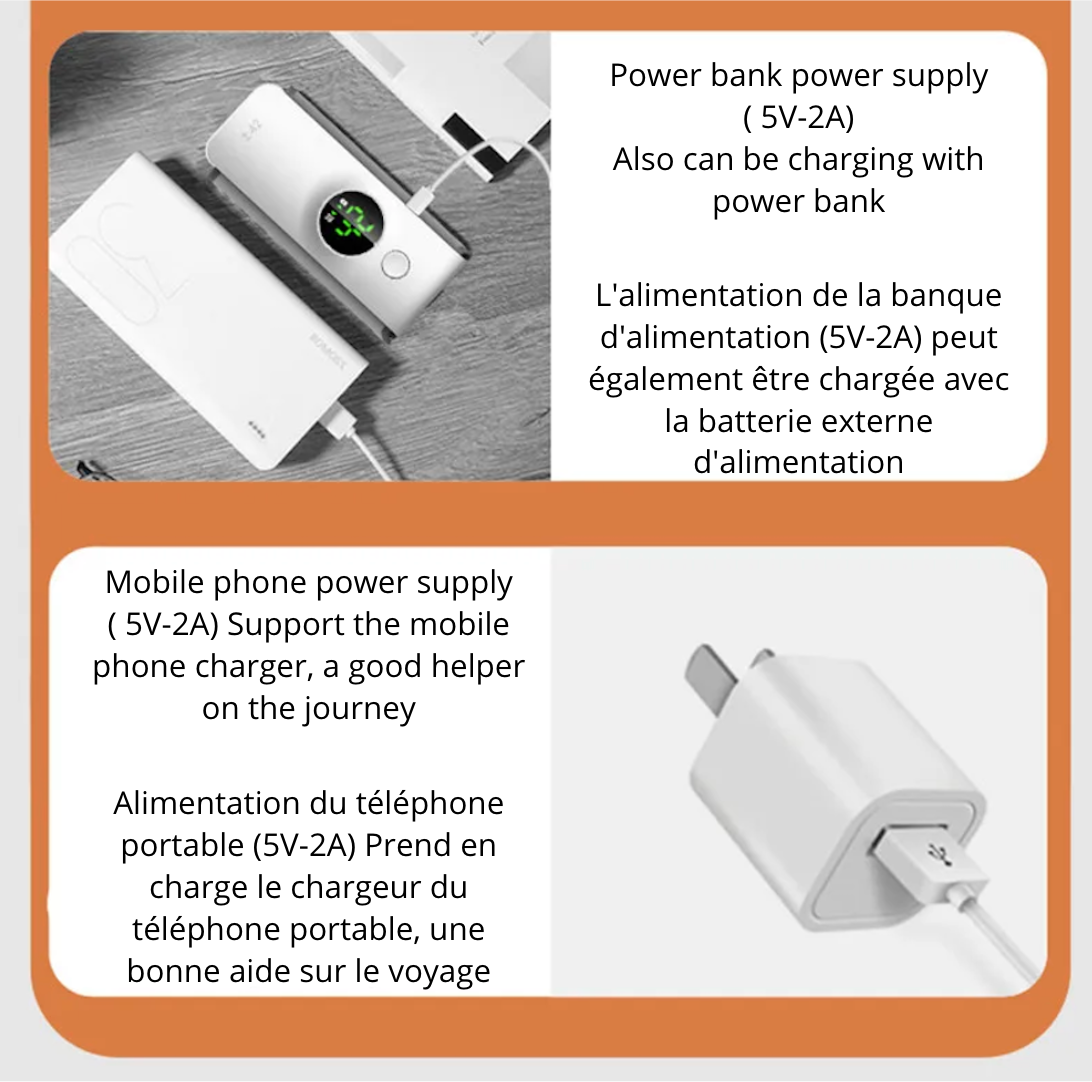 Découvrez notre chauffe-biberon portable pour bébé, un incontournable pour les parents modernes en déplacement. Doté d'un affichage précis de la température et d'une fonction de réglage de la température, cet appareil polyvalent offre une expérience de chauffage optimale pour les repas de votre bébé. Avec une endurance prolongée et une variété d'options de charge, dont USB, banque d'alimentation, port USB de voiture ou port d'ordinateur portable, ce chauffe-biberon est conçu pour s'adapter à votre style de vie actif. Grâce à sa batterie de 6000 mAh et à sa taille compacte (5.5-8.7)x14.5cm/(2.17x3.53)x5.71in, il est facile à transporter et à utiliser n'importe où. Le forfait comprend un sac chauffe-biberon et un câble USB, pour une commodité maximale lors de vos déplacements. Offrez à votre bébé des repas chauds et réconfortants en toute simplicité avec notre chauffe-biberon portable polyvalent.