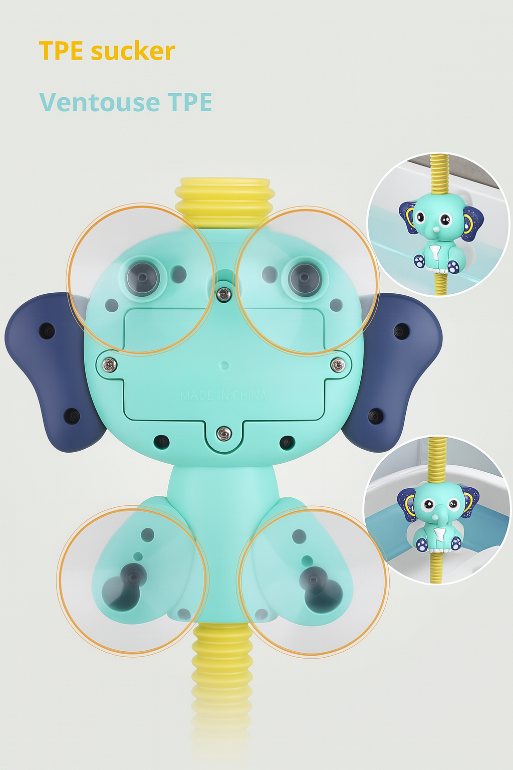Découvrez notre pulvérisateur d'eau électrique pour enfants, un jouet de bain ludique qui transforme l'heure du bain en un moment de plaisir inoubliable. Doté d'un design amusant en forme de lotus pour une expérience de pulvérisation d'eau unique, ce jouet de bain électrique est parfait pour la salle de bain, la natation et la piscine. Ajoutez une touche de fantaisie à la routine du bain de votre enfant en introduisant ce jouet de bain mignon qui garantit des éclats de rire et des sourires. Il suffit de tapoter sur le ventre du jouet pour déclencher une pulvérisation d'eau par le jet supérieur, offrant ainsi une stimulation sensorielle amusante. Veuillez noter que les ventouses doivent être utilisées uniquement sur des surfaces lisses pour une adhérence optimale. Offrez à votre enfant un moment de jeu divertissant et éducatif grâce à ce pulvérisateur d'eau électrique innovant pour le bain.