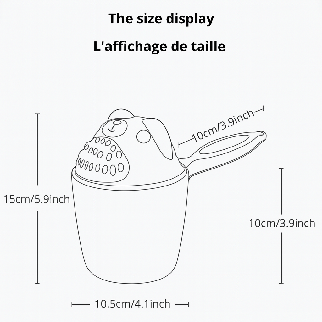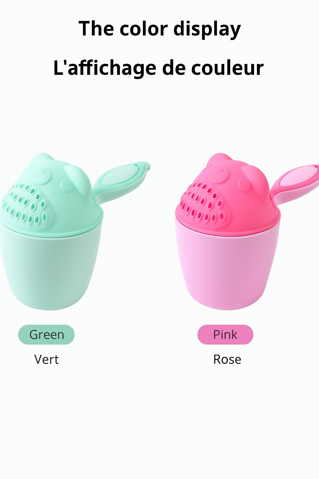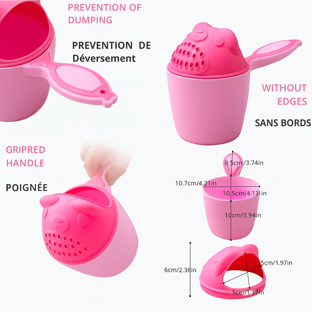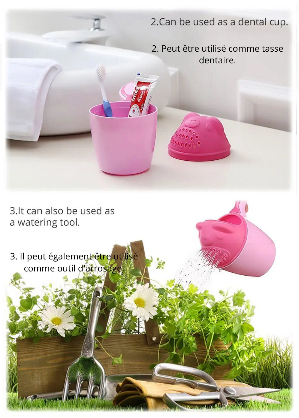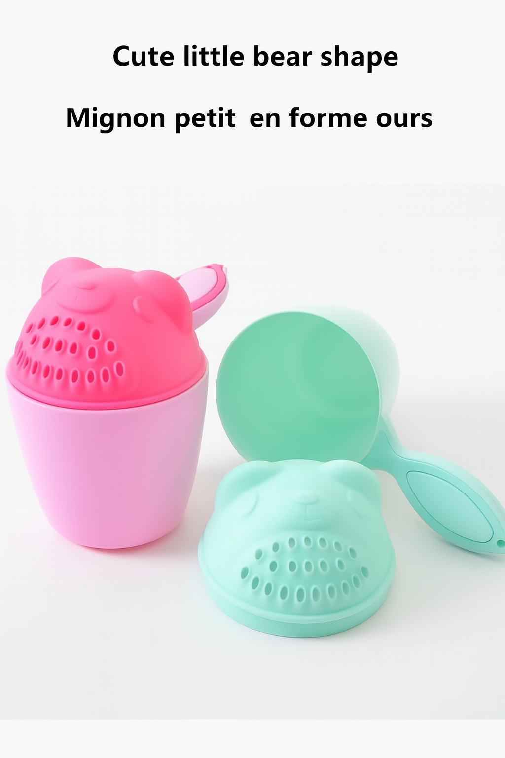 Découvrez notre adorable tasse de rinçage en forme d'ours ! Cette tasse multifonctionnelle n'est pas seulement parfaite pour rincer les cheveux de votre enfant avec du shampooing, mais elle est également idéale pour se rincer les yeux et le corps pendant le bain. Sa forme ludique d'ours rend l'heure du bain plus amusante pour votre enfant, tout en facilitant le rinçage.