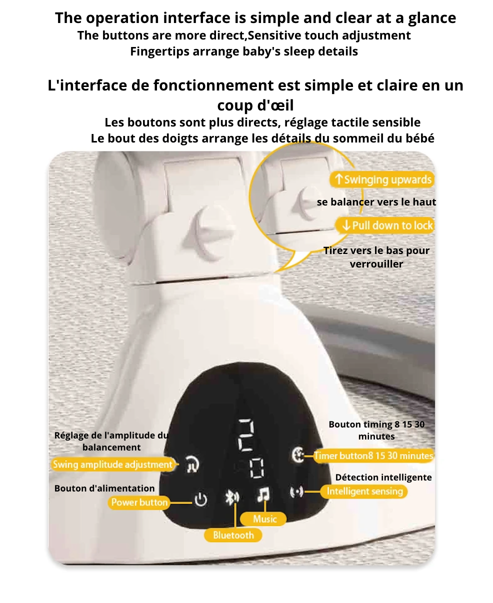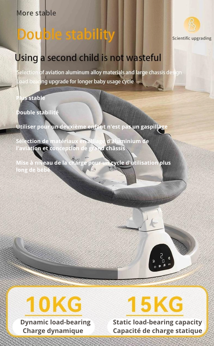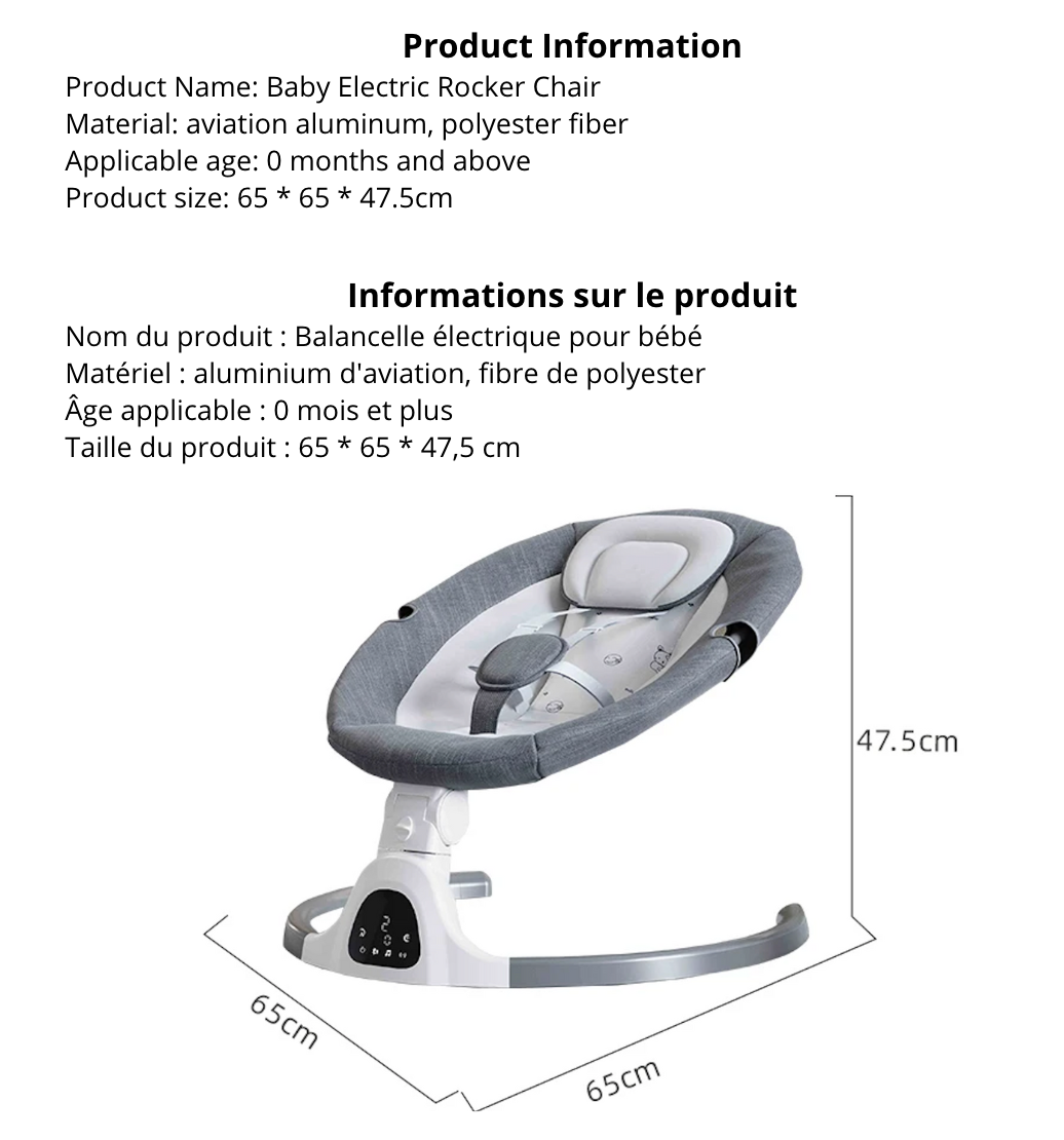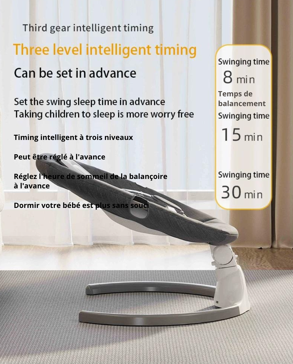 Découvrez la balancelle Minu, alliant un design luxueux à une praticité inégalée, elle deviendra le compagnon idéal de votre bébé de 0 à 36 mois. Confortable et sécurisée, cette chaise à bascule électrique pour nouveau-né est munie d'une ceinture de sécurité à 5 points pour assurer le bien-être de votre tout-petit. De plus, vous pouvez la contrôler à distance depuis votre téléphone via Bluetooth. Offrez à votre bébé des moments de repos paisibles et douillets grâce à notre balancelle Minu.