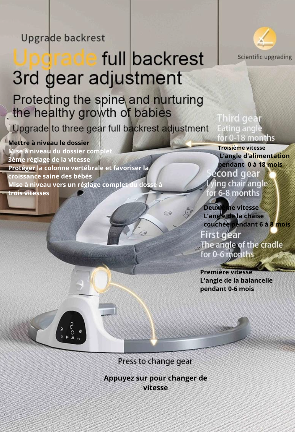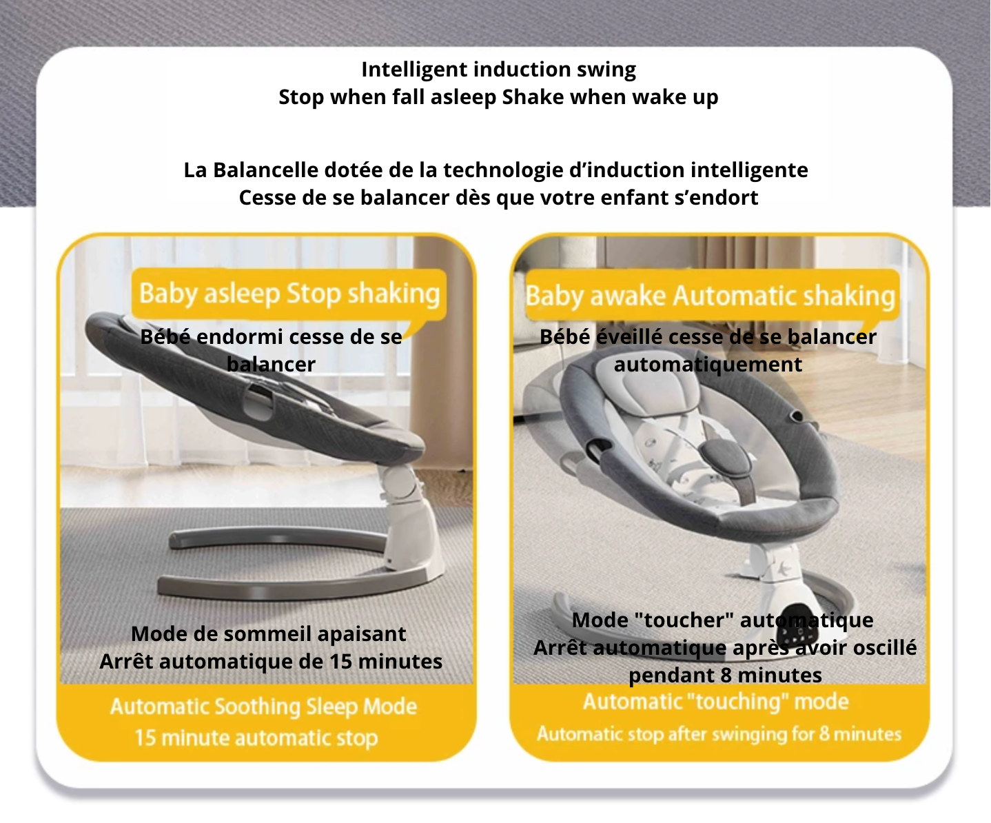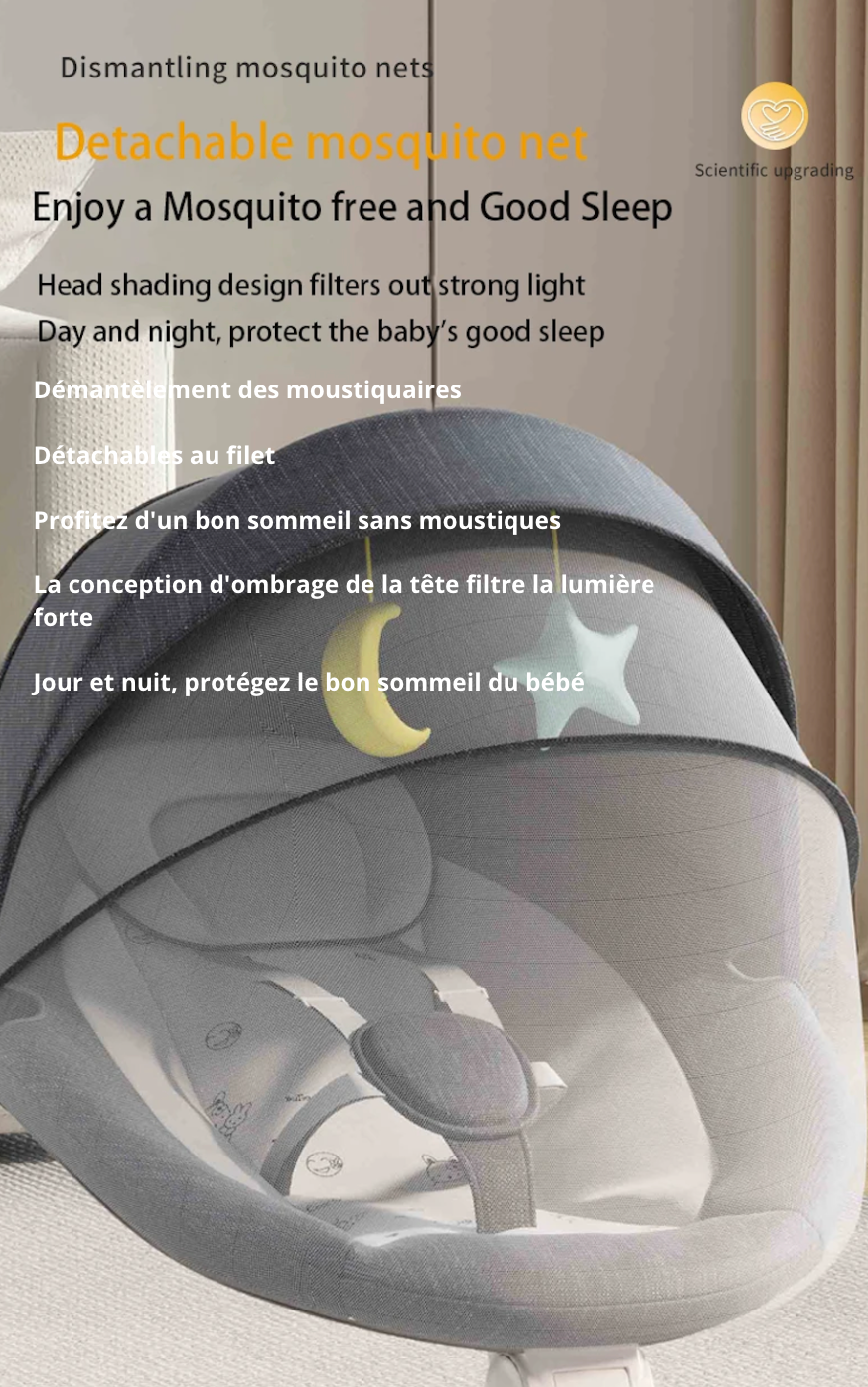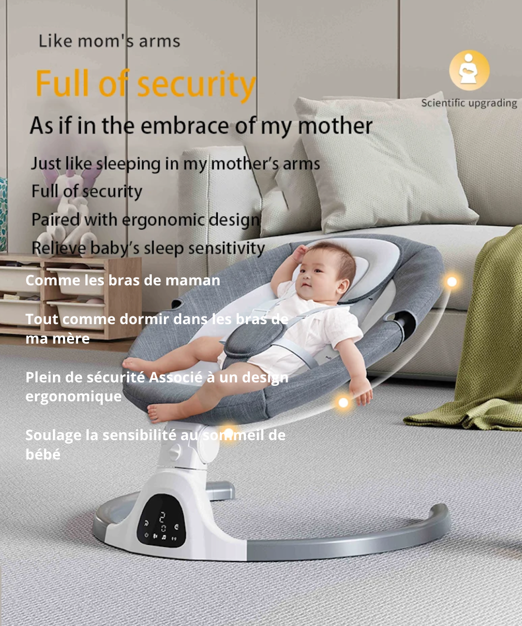 Découvrez la balancelle Minu, alliant un design luxueux à une praticité inégalée, elle deviendra le compagnon idéal de votre bébé de 0 à 36 mois. Confortable et sécurisée, cette chaise à bascule électrique pour nouveau-né est munie d'une ceinture de sécurité à 5 points pour assurer le bien-être de votre tout-petit. De plus, vous pouvez la contrôler à distance depuis votre téléphone via Bluetooth. Offrez à votre bébé des moments de repos paisibles et douillets grâce à notre balancelle Minu.