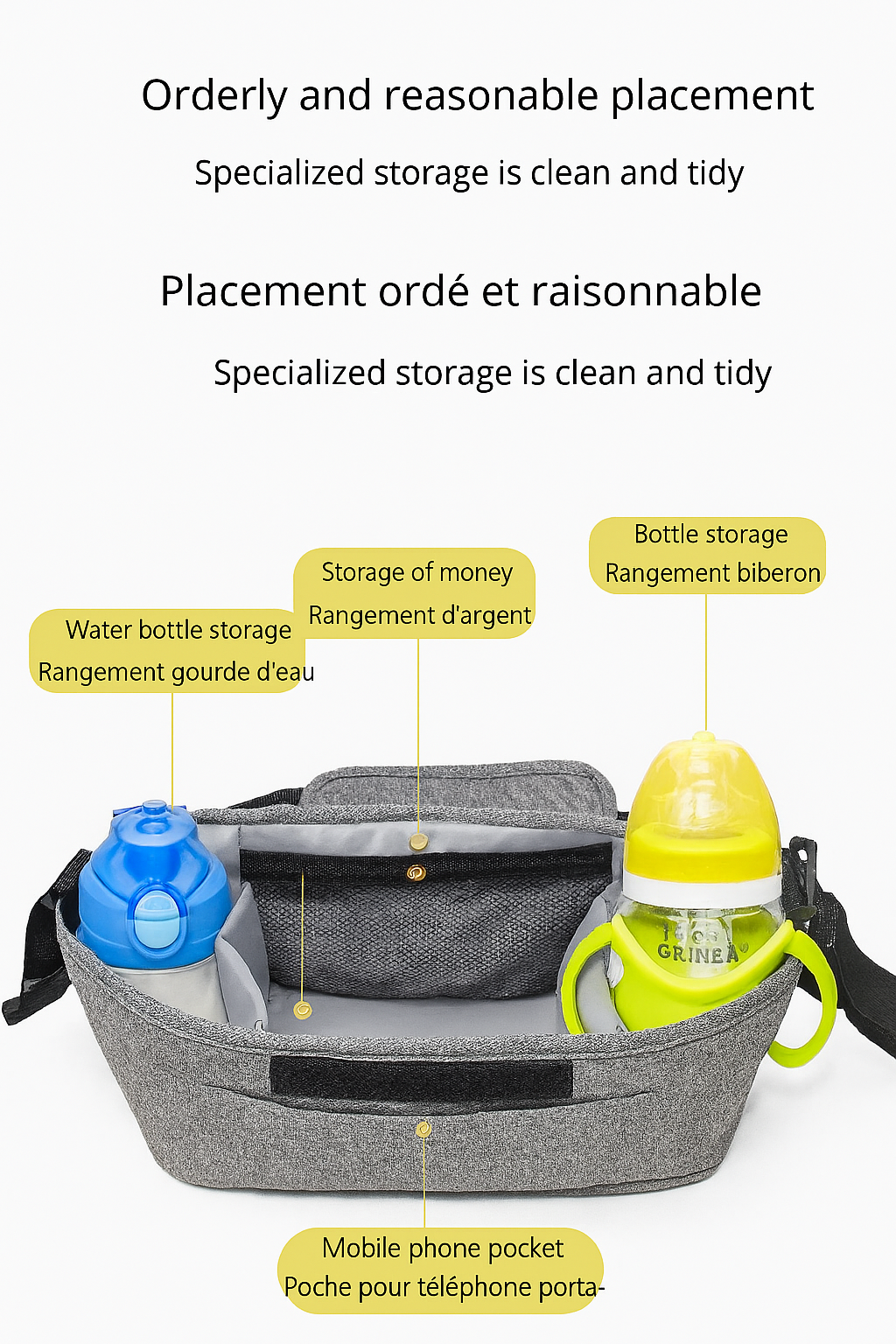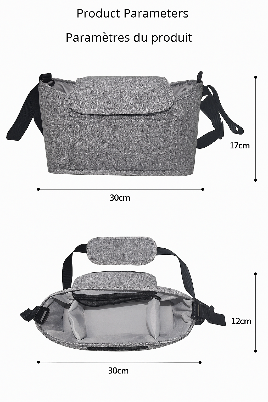 Découvrez notre sac bandoulière de poussette pour bébé, un accessoire indispensable pour les mamans en déplacement. Avec sa grande capacité et son organisateur intégré, ce sac vous permet de garder tous les essentiels de bébé à portée de main. Fabriqué en lin de haute qualité, ce sac est à la fois durable et élégant. Sa taille compacte de 30*12*17 cm le rend idéal pour les voyages et les sorties en famille. Équipé de multiples poches pour ranger les biberons, les accessoires de poussette et bien plus encore, ce sac est le compagnon idéal pour les mamans dynamiques. Ne dispensez pas ce sac pratique et stylé pour simplifier vos déplacements avec bébé !